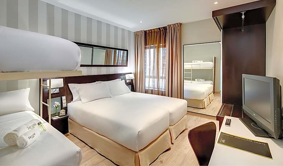 This quadruple room features a satellite TV, soundproofing and air conditioning. Electric kettle available on request.
